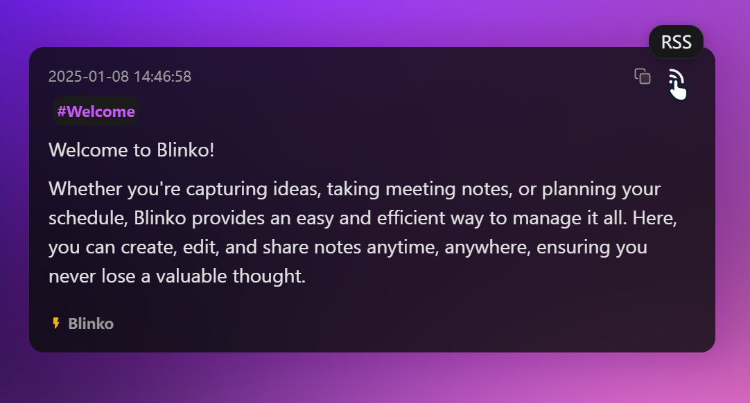 Blinko为公开笔记提供RSS订阅支持,让您能够通过您喜爱的RSS阅读器获取最新内容更新。